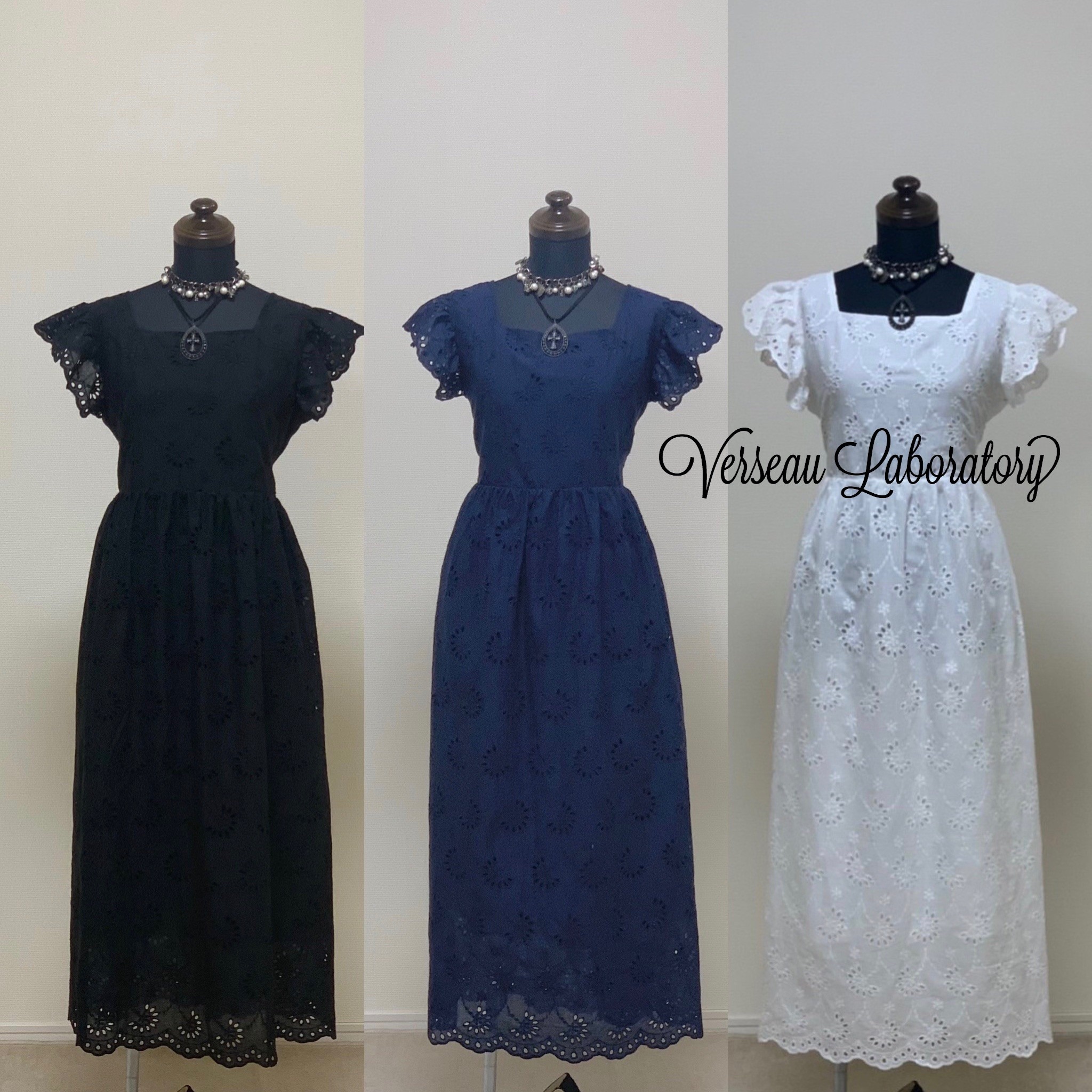 白金発Chocororryブランドのアリスシリーズのワンピースがネット販売で初登場。マスク、カチューシャを含む3点おそろいの商品です。色はネイビー、黒、白の3色展開。