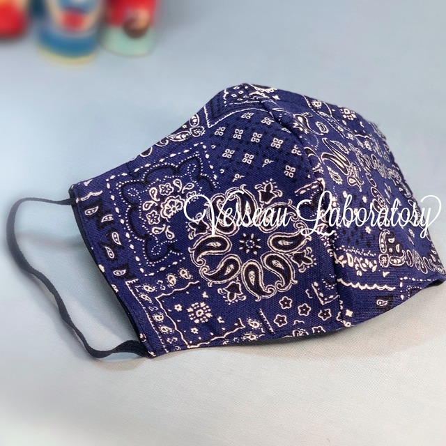 021 【セール】 ネイビーバンダナ 男女兼用大判 布マスク かわいい カラフル 日本製 綿100%