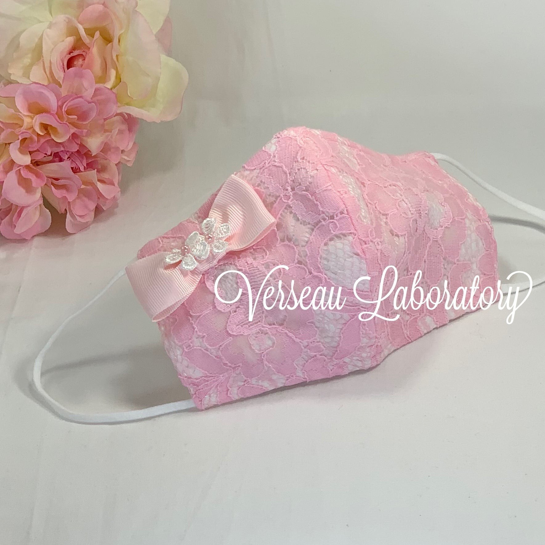 ピンクのレースのラブリーシリーズはかわいいをコンセプトにつくられたマスクで、大人の方からお子様までかわいいものがお好きな方にお勧めです。従来シリーズの桃色シリーズと比べピンクの色が鮮やかになりサイズも少し小さくなりました。