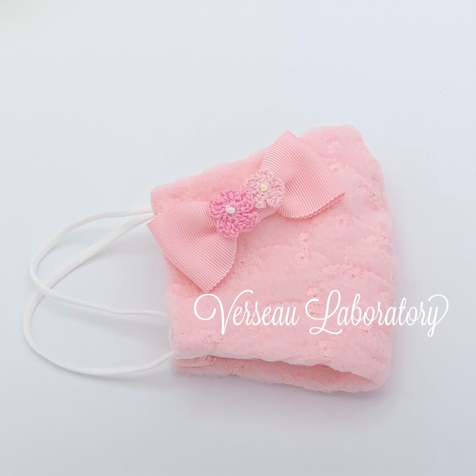 487 手編み花花リボン ピンクフリースレースシリーズ マスク
