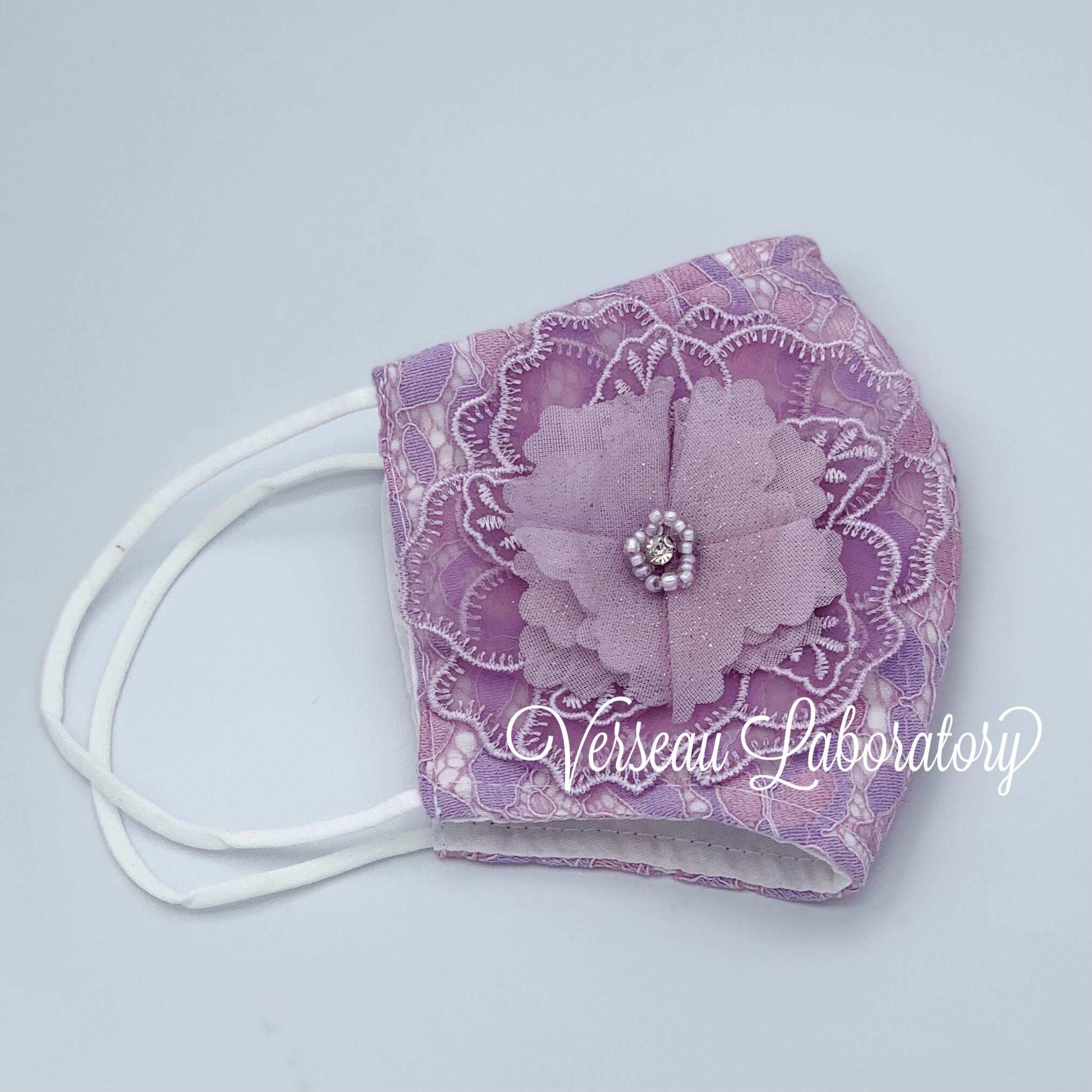 人気のパープルに染めてみました。かわいいあざやかな色のマスクができました。ショッピングなどのお出かけや日常使いにぜひご利用ください。