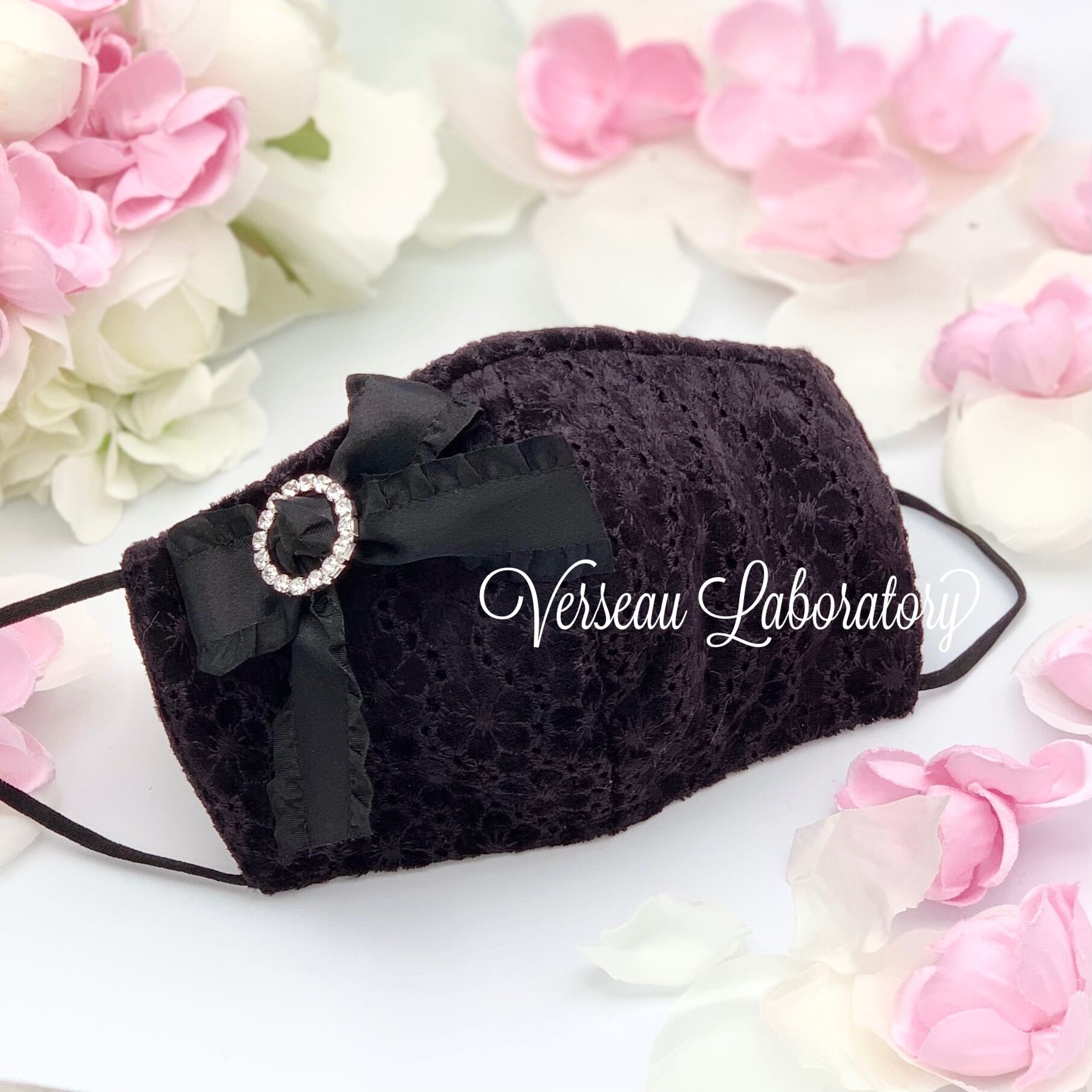 ベロアは暖かくて柔らかい肌触りで着け心地もよく光沢もありゴージャスな装いです。ベロアミニフラワーレースシリーズはベロア素材に小さなフラワーの刺繍を施した高級感あるマスクです。冬のコーディネートに使えるマスクです。