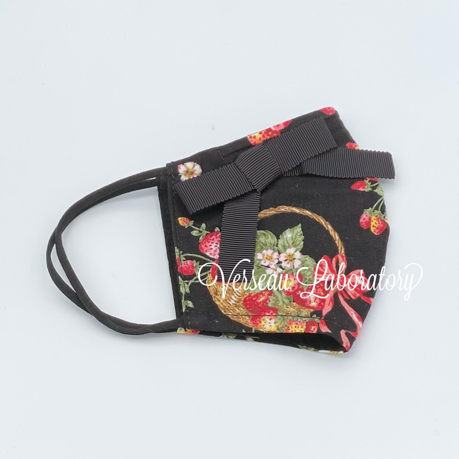 177 【セール】 売れてるマスク いちご狩りシリーズ 黒 細リボン