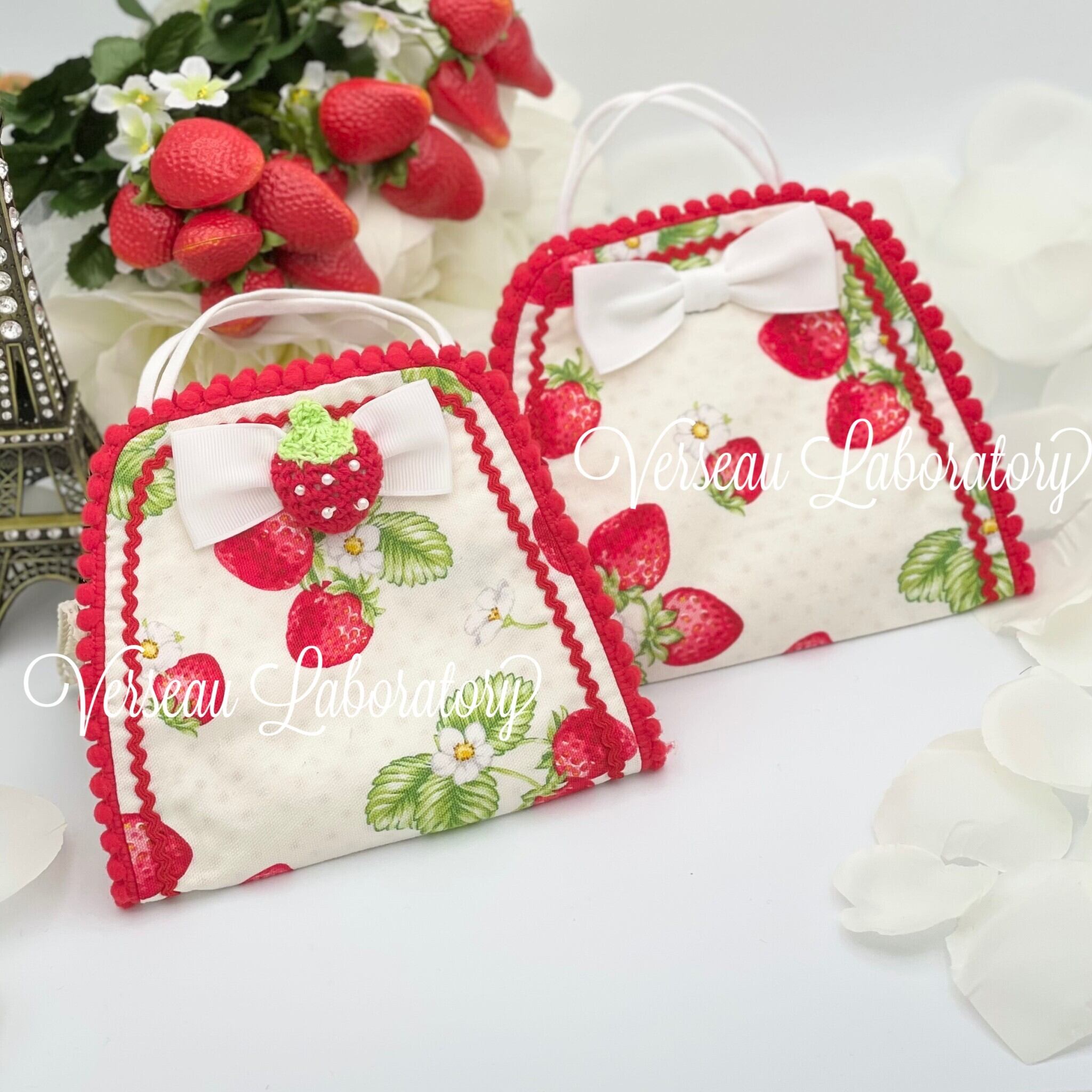 管理NO2104-240@洗えるマスクケース いちごちゃんシリーズ白いちごリボンorリボン