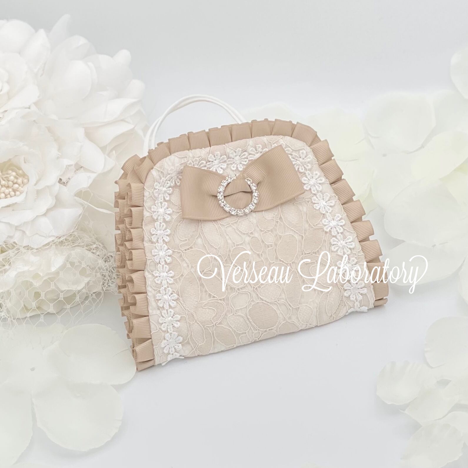 管理NO210515-568@洗えるマスクケース グラスベージュシリーズ ショコラベージュ キラキラバックルリボン