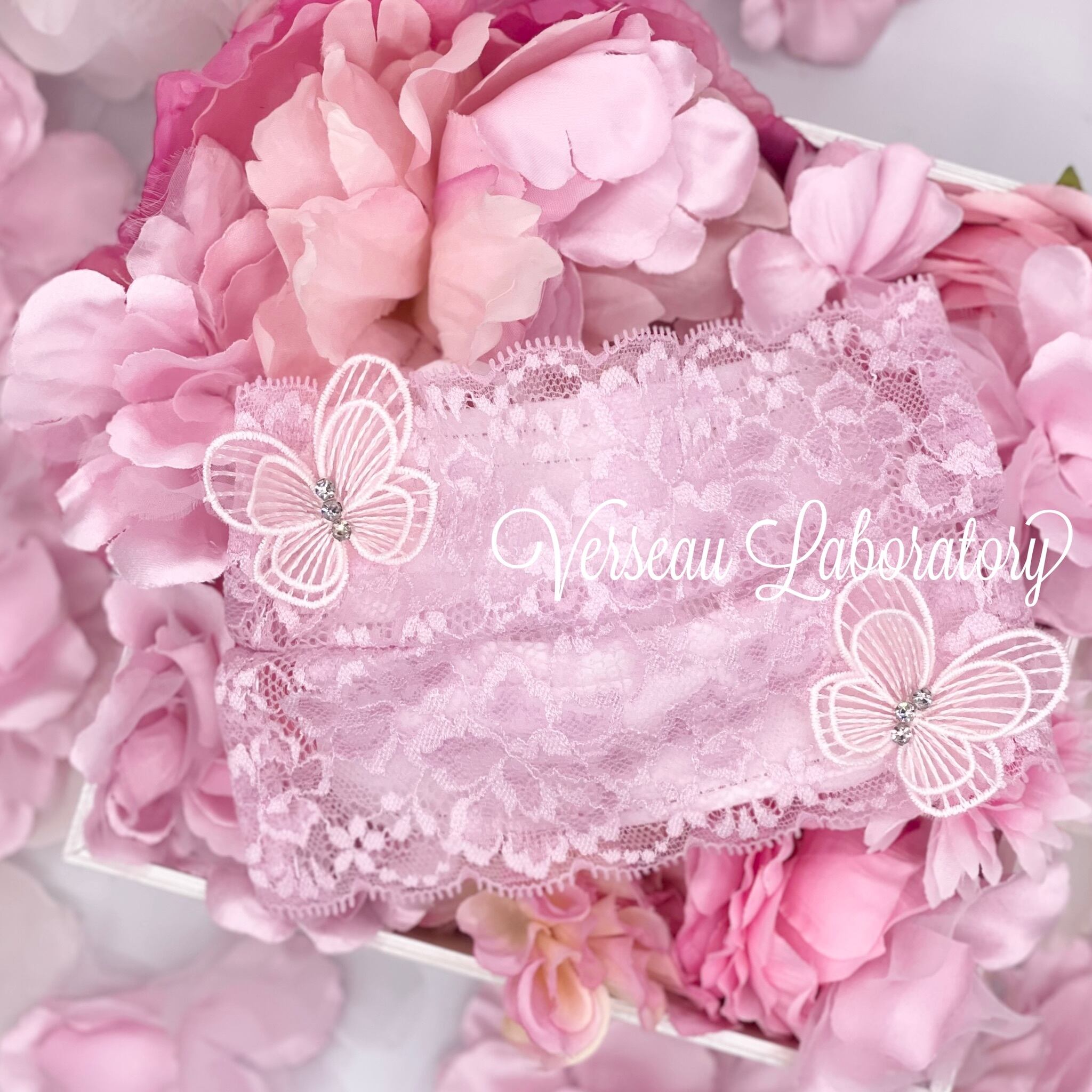 大人気かわいい恋するパピヨンの不織布マスク用レースマスクカバーです。みんなの注目NO.1になってしまうマスクカバーです。