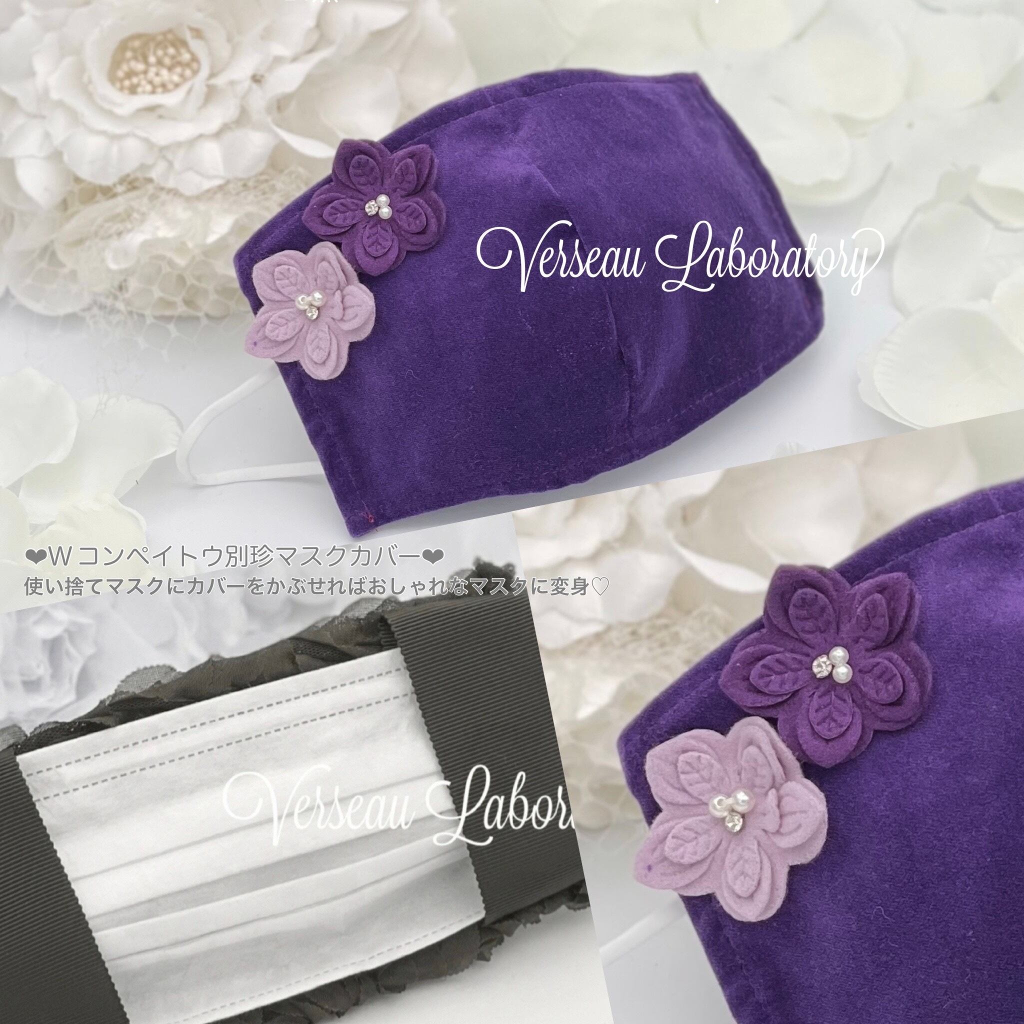 B52 【セール】 マスクカバー 別珍マスクカバー Wコンペイトウ パープル 不織布マスク用マスクカバー UV対策 おしゃれ かわいい マスク に変身