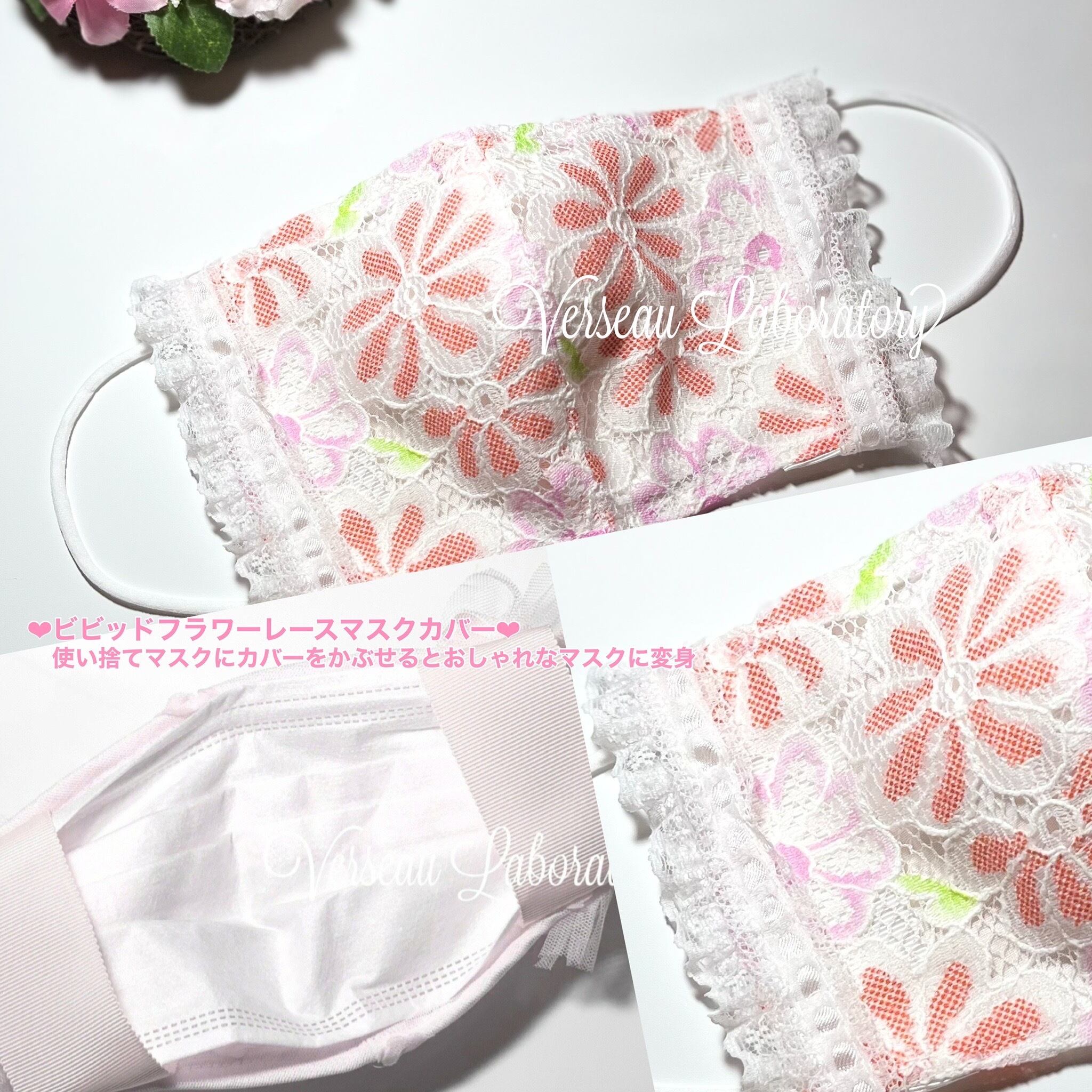 C10 【セール】 マスクカバー ビビットフラワーレースシリーズ オレンジピンク サイドレース 1重タイプ 不織布用マスクカバー 洗える おしゃれ マスクカバー | Verseau Laboratory