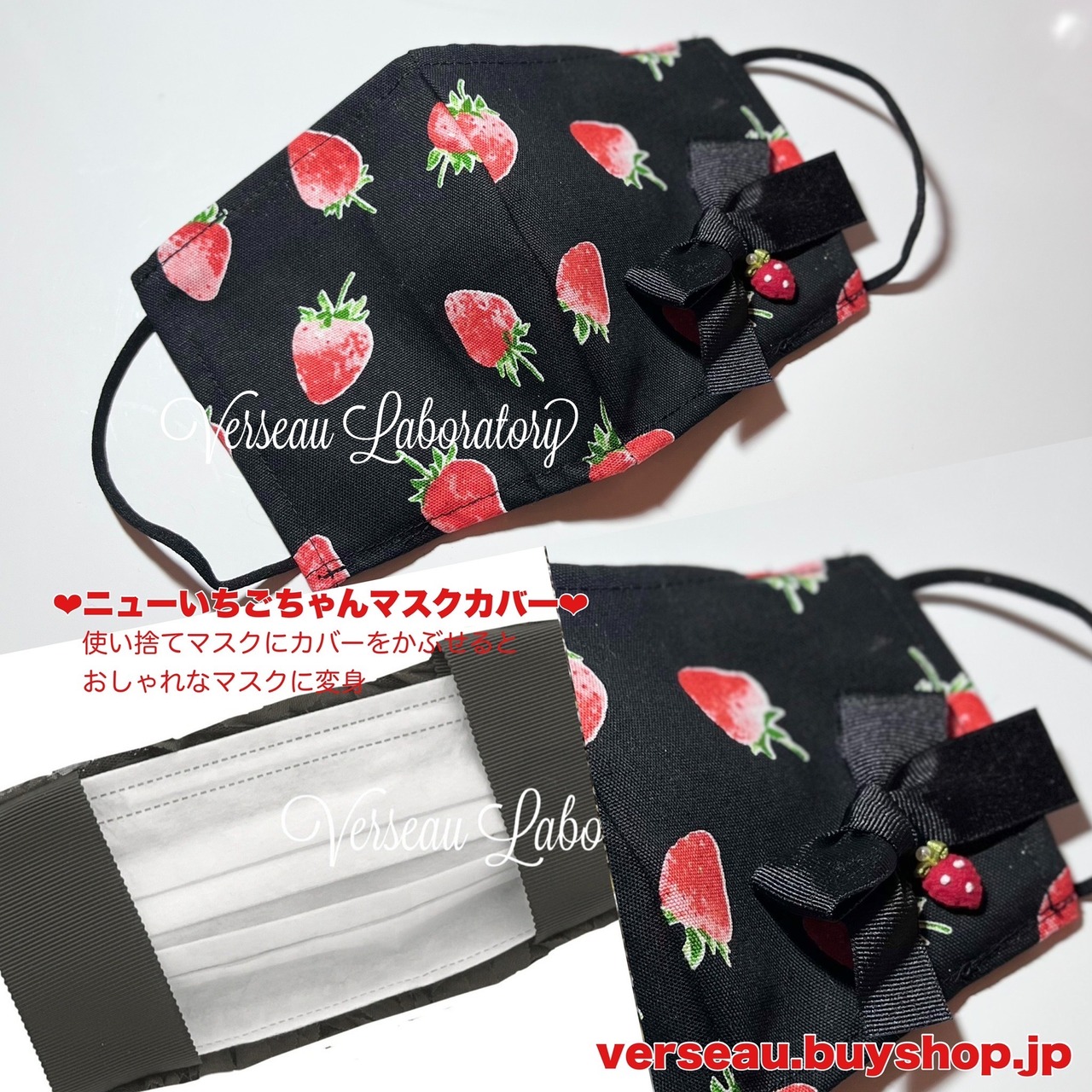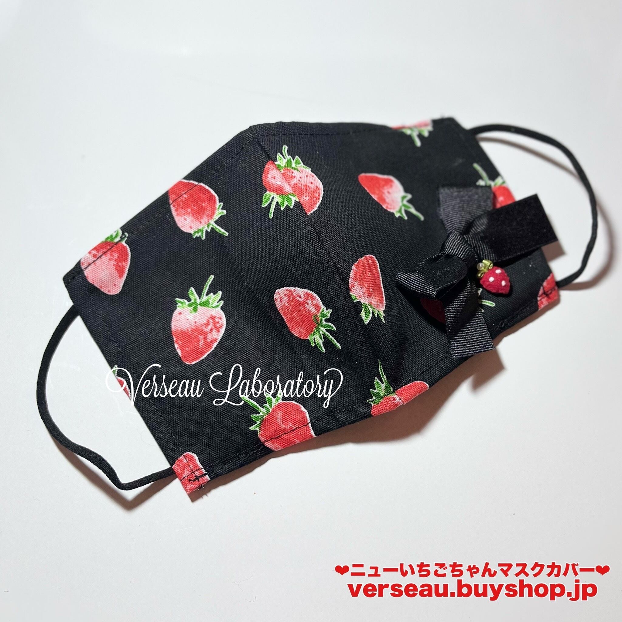 管理NO220303-1147@マスクカバー ニューいちごちゃんシリーズ ブラック リボン