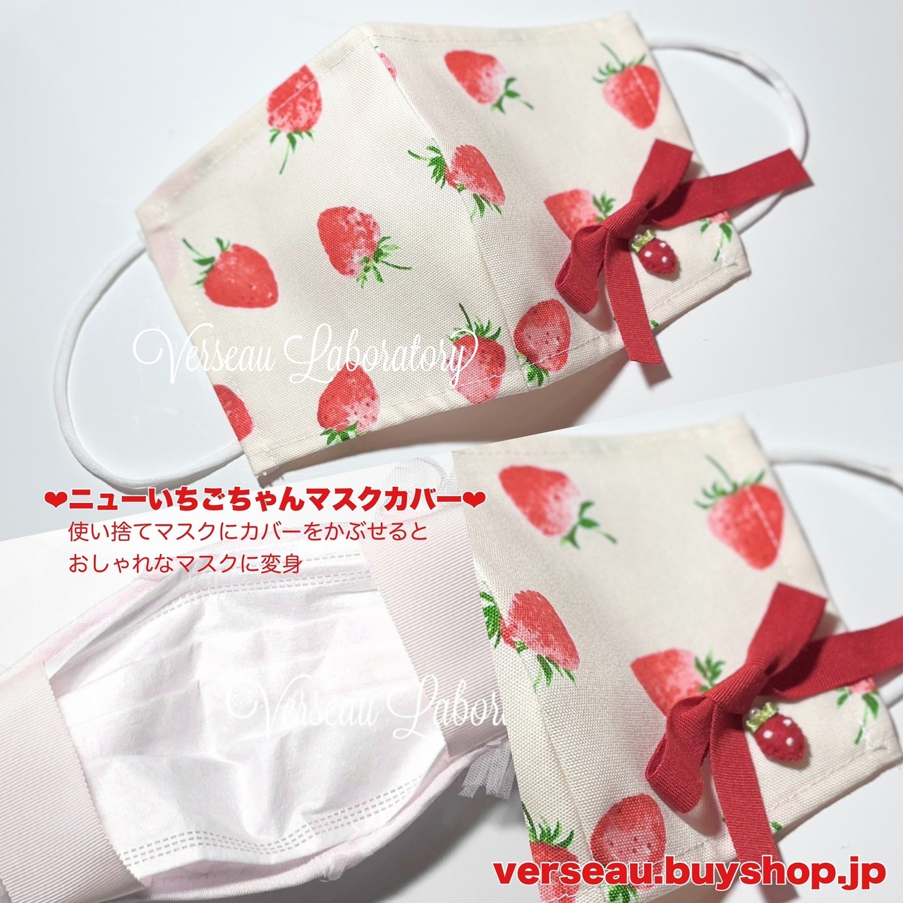 1147 【セール】 マスクカバー 3枚セット 1重タイプ 不織布マスク用マスクカバー ニューいちごちゃんシリーズ ピンク レッド ブラック 3色セット おしゃれ かわいい UV対策 布 日本製 | Verseau Laboratory