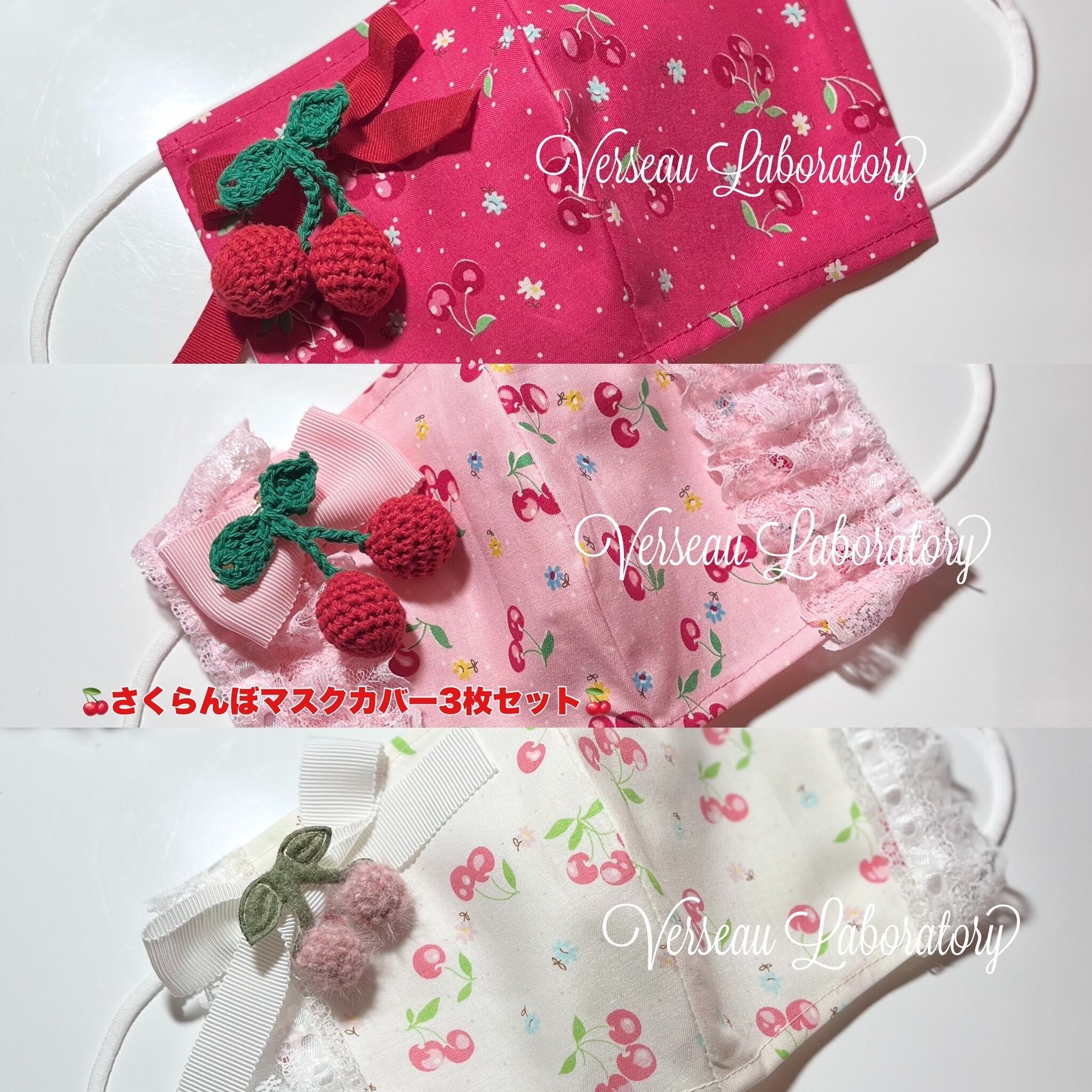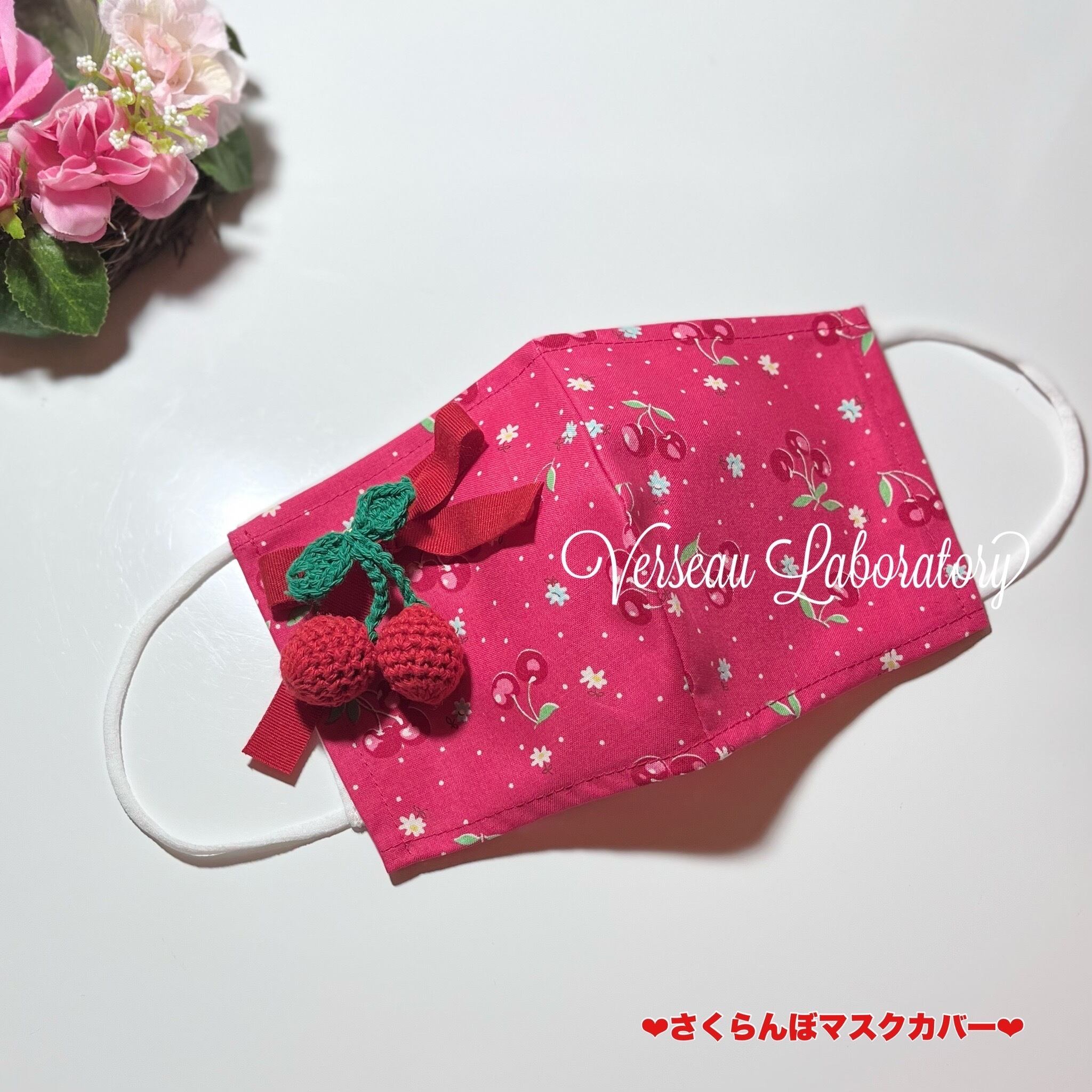 管理NO220305-C26@マスクカバー さくらんぼシリーズ さくらんぼリボン レッド