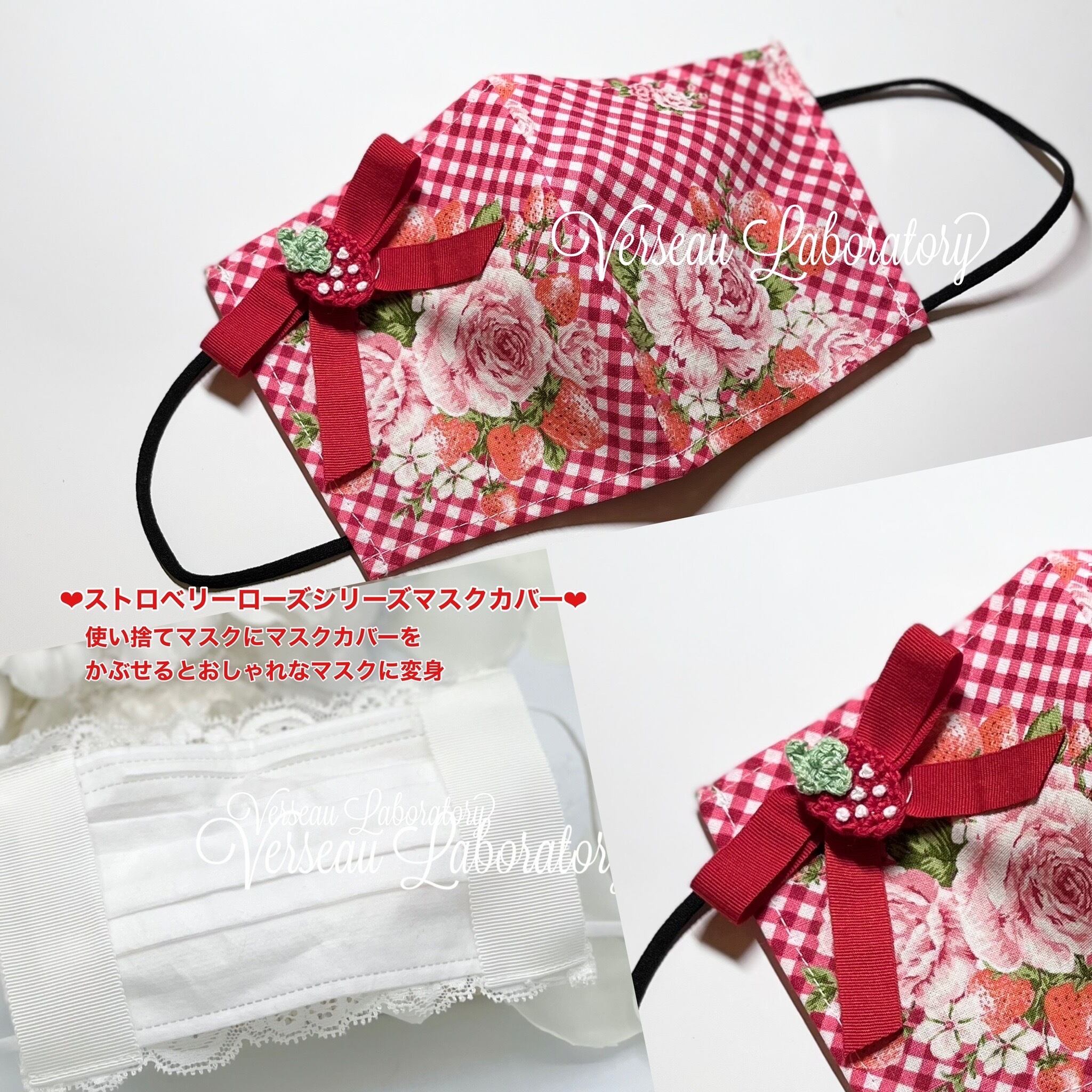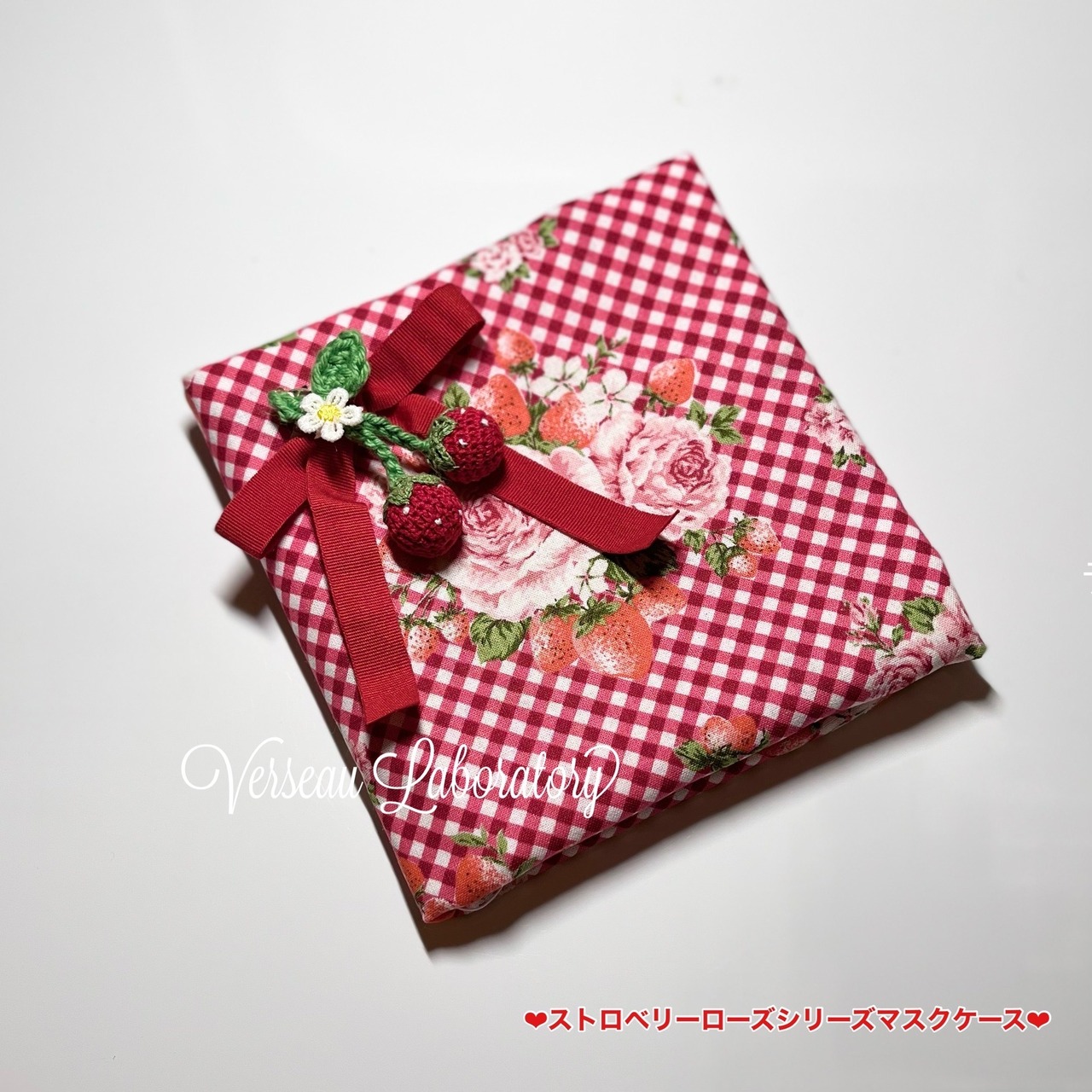 1175 【セール】 マスクカバー&マスクケース ストロベリーローズシリーズ レッドセット ★ストロベリーローズシリーズ レッド マスクケース & ストロベリーローズシリーズ レッド いちごいちごリボン マスクカバー おしゃれ かわいい セット | Verseau Laboratory