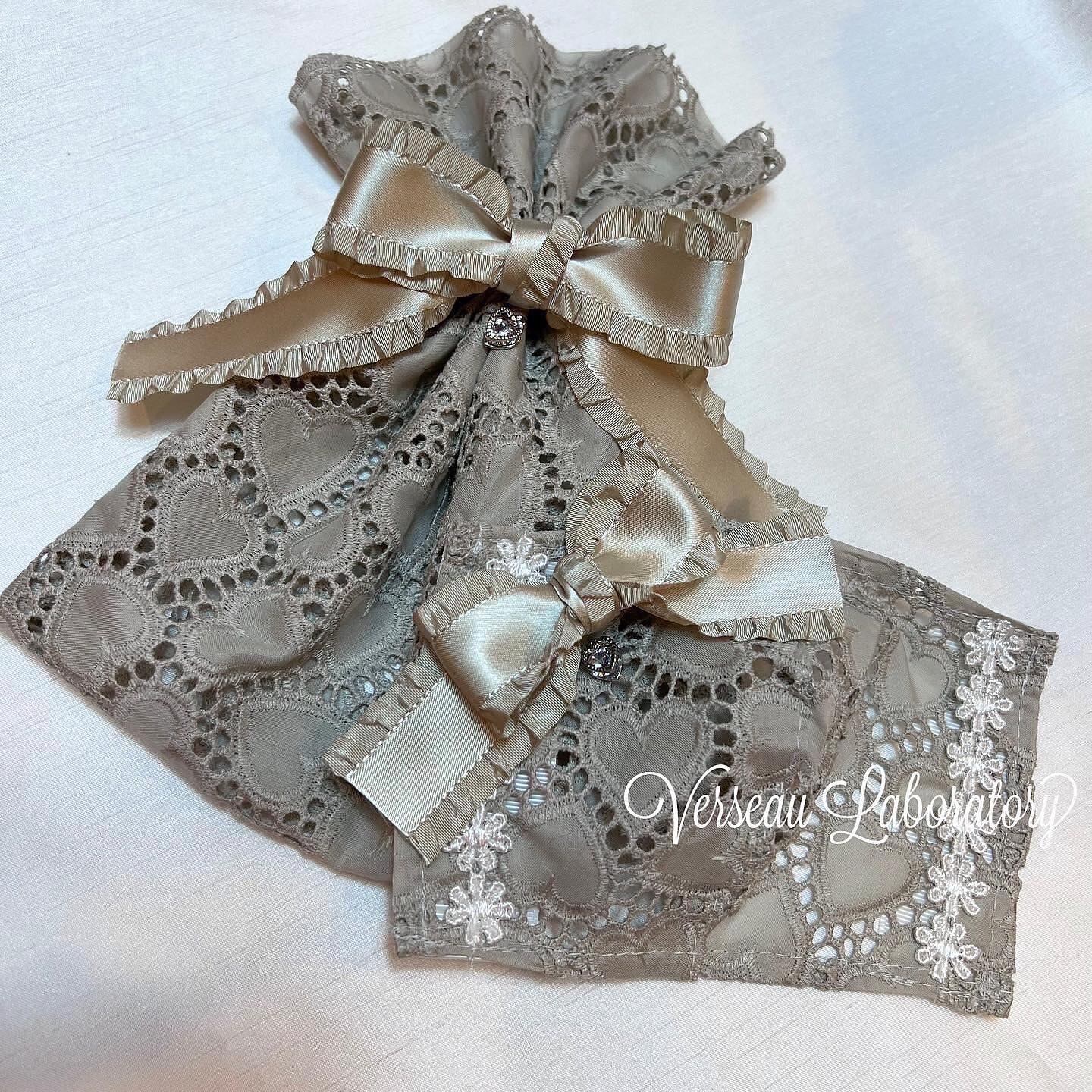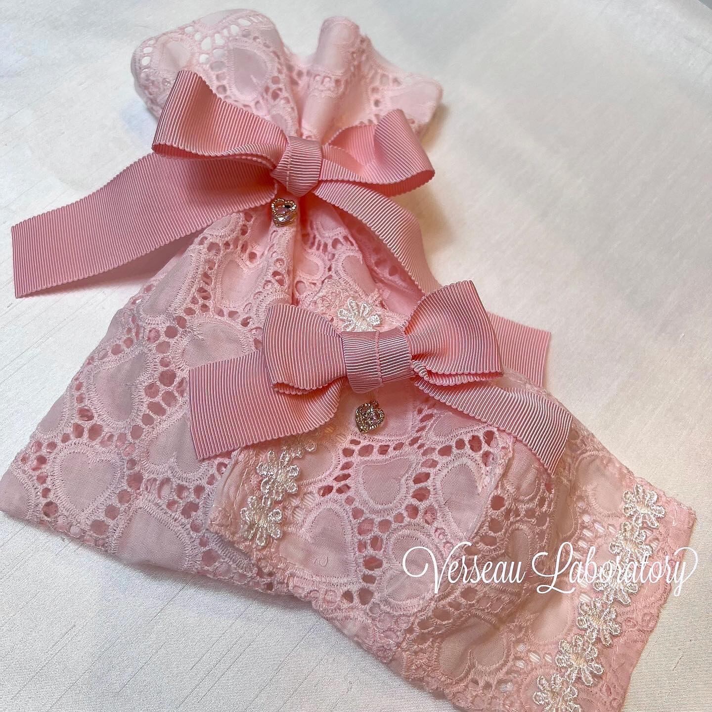 1195 【セール】 選べる3色 マスク用きんちゃく ホワイト/ピンク/モカベージュ スイートハートシリーズ きんちゃく りぼん ハートビジュ 洗える おしゃれ 巾着 プレゼント ギフト 敬老の日 レース 手作り | Verseau Laboratory