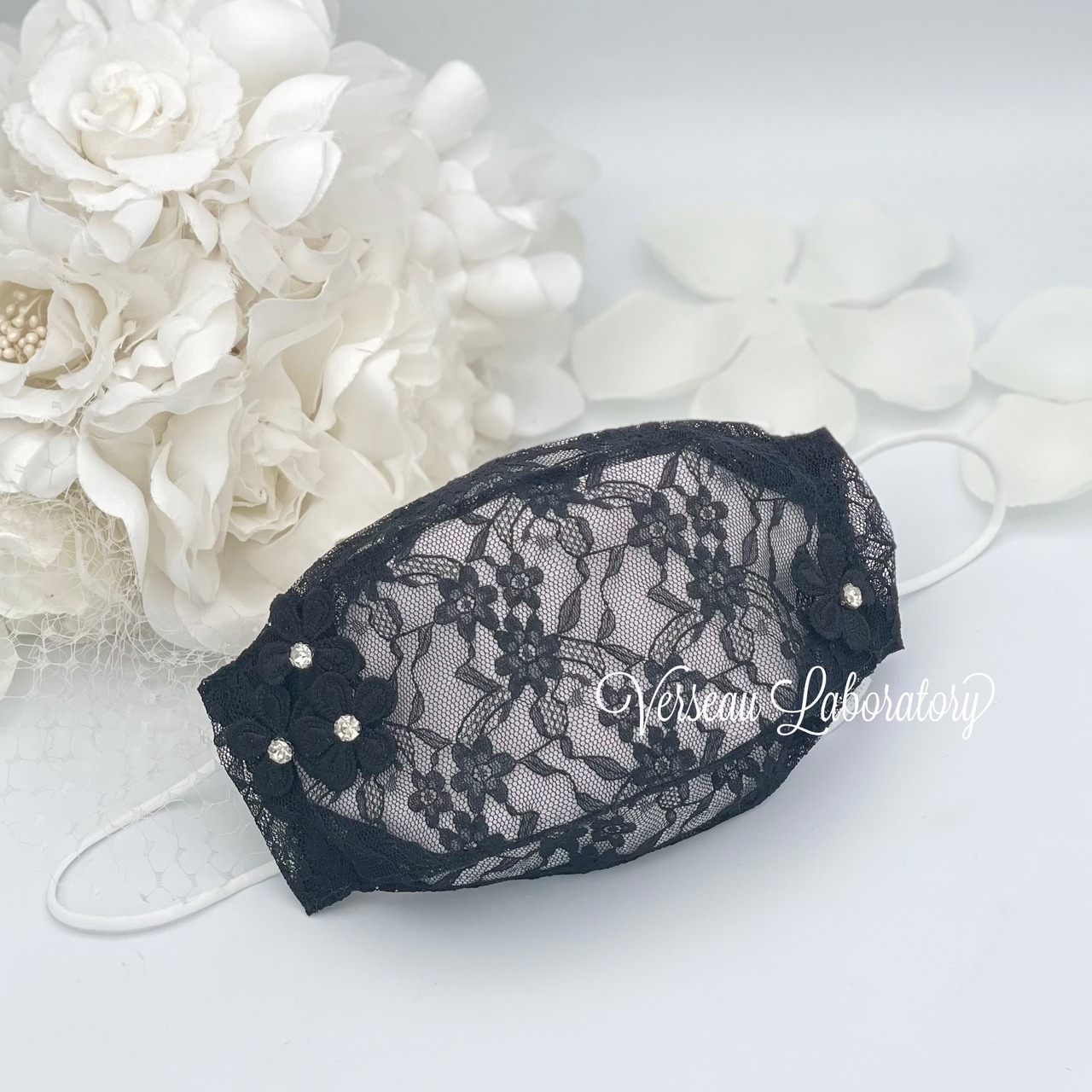 1203 2枚セット【セール】 マスクカバー 柳葉型 ノーブルレースシリーズ ブラックジャスミンのシエスタ&ラベンダーバタフライ おしゃれ 立体 3D 舟形 あひる型 かわいい ギフト プレゼント 敬老の日 卒業式 結婚式 女子会 不織布マスクカバー JN95 KF94 | Verseau Laboratory