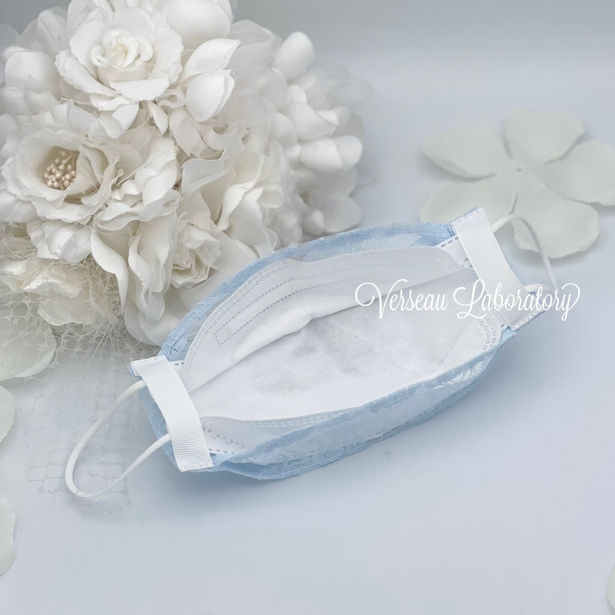 E82 【セール】 柳葉型マスクカバー 柳葉型ノーブルレースシリーズ ブルー アスターダイヤ 単品マスクカバー おしゃれ 立体 かわいい ギフト プレゼント 母の日 卒業式 入学式 結婚式 女子会 不織布マスクカバー マスク 不織布マスク レース JN95 KF94 | Verseau Laboratory