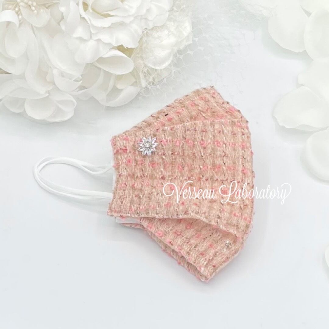 G06 【セール】 柳葉型マスクカバー ホットツイードシリーズ ピンクベージュ プティビジュ UV対策 おしゃれマスクカバー 秋冬用 JN95 KF94 対応 アヒル型 立体 舟型 | Verseau Laboratory