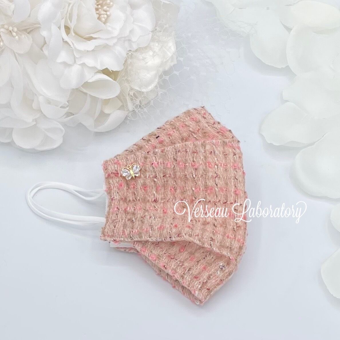 G05 【セール】 柳葉型マスクカバー ホットツイードシリーズ ピンクベージュ ミニ蝶々 UV対策 おしゃれマスクカバー 秋冬用 JN95 KF94 対応 アヒル型 立体 舟型 | Verseau Laboratory
