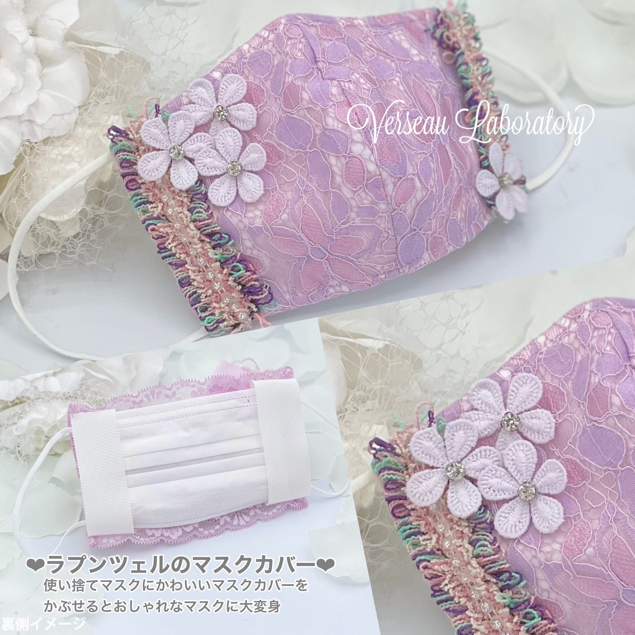 管理NO230112-G43@マスクカバー ラプンツェルのサイドきらきらマスクカバー ジャスミンのシエスタ グラスパープルシリーズ