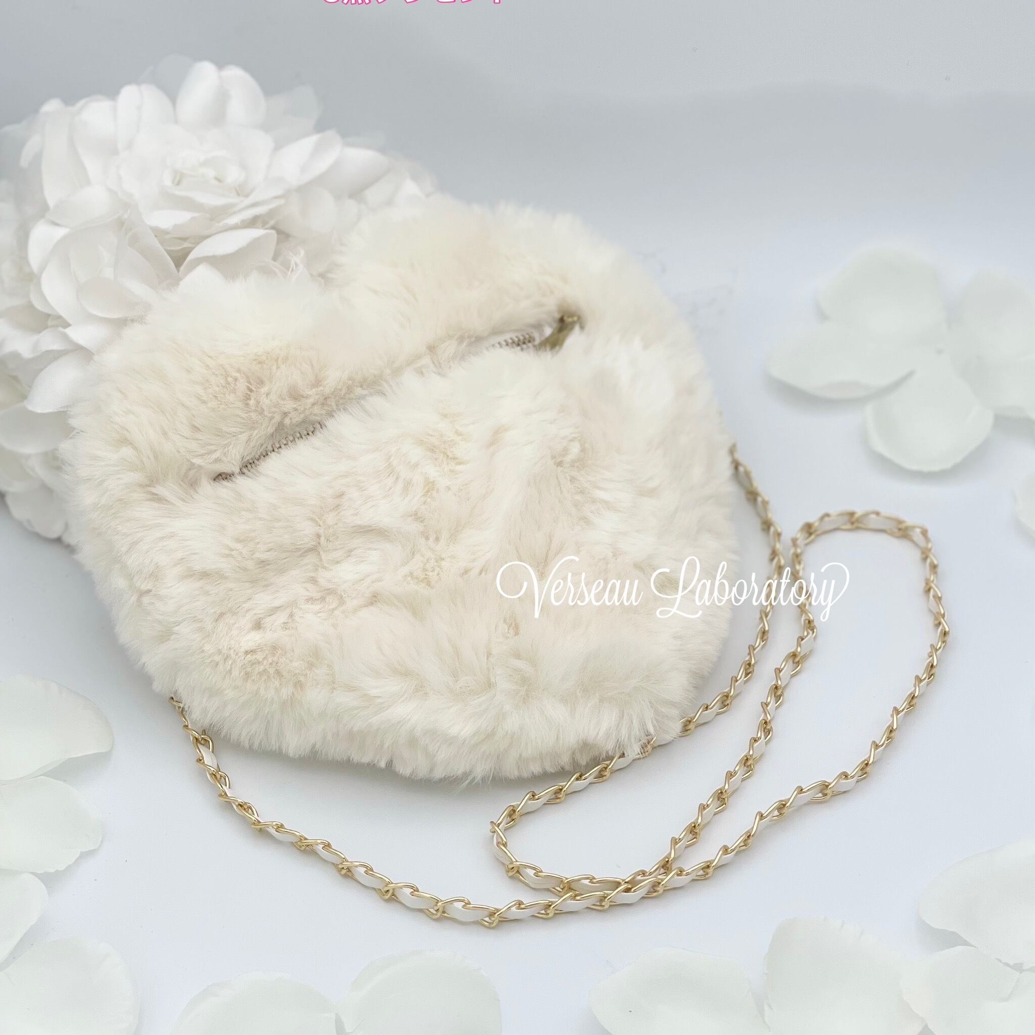 I21 【新発売】 ハート ふわもこ おりぼん ポシェット ホワイト コンビネーションショルダー ゴールド&ホワイト レディース フェイクファー 斜め掛け バッグ カバン ポーチ | Verseau Laboratory